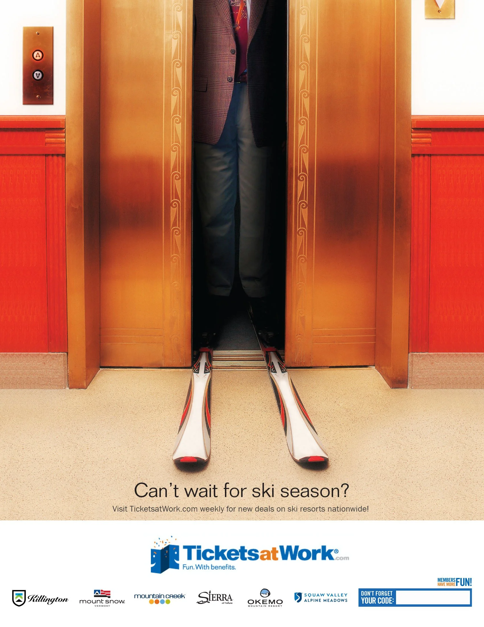 To promote the annual ski season and build excitement, posters were mailed during the summer to participating TicketsatWork partners. Human Resource contacts were asked to display posters in common areas such as breakrooms and cafeterias.